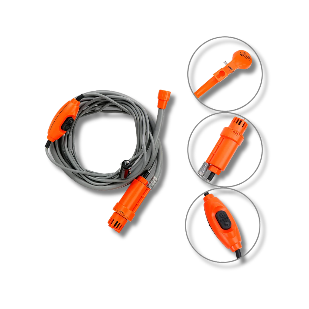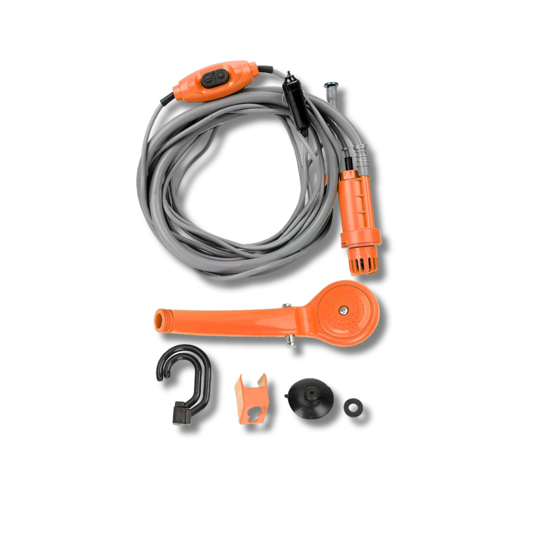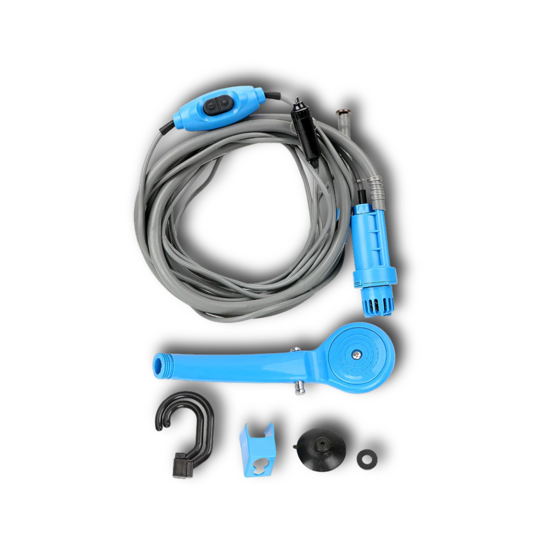 Wherever the road takes you, stay clean, refreshed, and ready for more with the Highland Drift CleanWave — the all-in-one 12V portable shower and washer system built for travelers who don’t slow down.